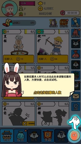 身處亂世想要崛起,首要之事便是賺錢。老話說得好,民以食為天,那就先著手招人,從烹飪這一塊做起吧!